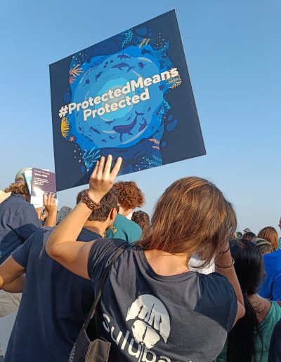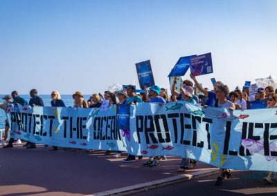 On 7 June, prior to the start of the UNOC3, civil society stakeholders participated in The Blue March organised by Seas-at-Risk at the seaside in Nice. Ocean protection messages abounded as advocates and ocean defenders called for ocean protection in every possible way. Some key messages at the march called on governments to stop bottom trawling in our oceans, with the slogans ‘Don’t Touch My Bottom’ and ‘Protected means protected’.