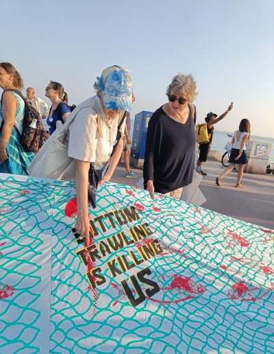 We joined partners to add our own voices to stop dredging and reclamation of our ocean home. Notably, Nice police were mobilised to disrupt the peaceful protest where advocates unfurled the world’s largest hand-printed banner to tell the world that ‘bottom trawling is killing us’! The show of force and the heavy presence of less than orderly law enforcement elements indicated the low tolerance for dissent around UNOC3. The show of unnecessary aggression by law enforcement officials gave away the position of the involved authorities that civic voices, action and participation was less than welcome at UNOC3. The evident corporate takeover of La Baleine during the conference is indicative of the absence of civic space at UNOC3 which should be about people and planet, as opposed to a space for displaying lethal weapon-bearing armed power and corporate exploitation.